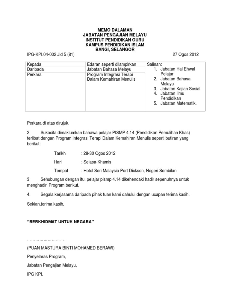 Contoh Memo Bahasa Melayu Georgiartl