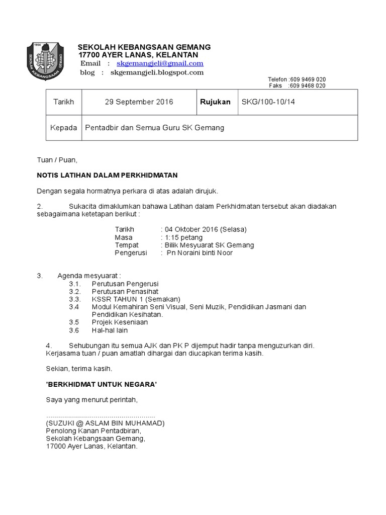 Contoh Memo Mesyuarat Panitia Smkih Pdf